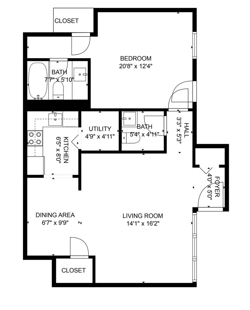 2 Beds, 1 Bath, 886 sq ftAvailable Nov 1Model Gallery
