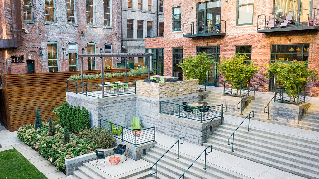 Nestled around two secluded courtyards in Cleveland's Historic Warehouse District, Worthington Yards offers gracious loft living in a quiet, high-design oasis.