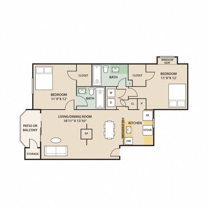 2 Beds, 2 Baths, 1010 sq ftAvailable NowModel Gallery