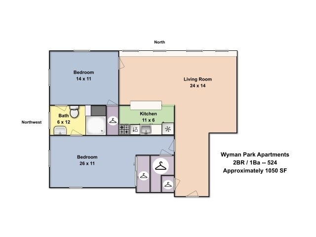 Unit: 415 - Image 10 Apartment Unit: 524Apartment Model: 2BR/1.0BA$1,9252 Bedroom, 1 Bath, 1050 sq ftAvailable August 13, 2026![]()