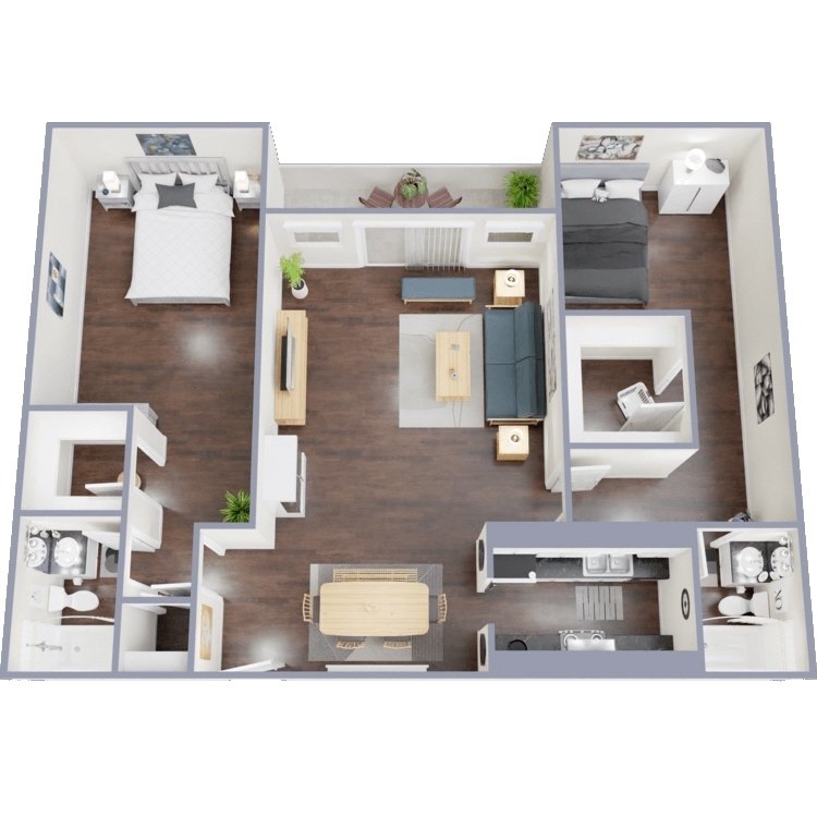 2 Beds, 2 Baths, 858 sq ftModel Gallery