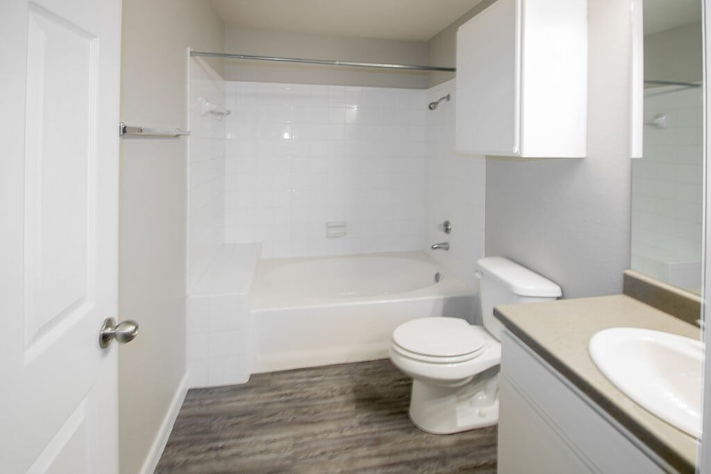 Our UPGRADED two bedroom, two bath floor plan provides ample space and updated finishes. Each of our stylish apartments guarantees modern fixtures and features, such as a full-size washer and dryer, spacious walk-in closets, luxurious, soaking tubs, a private patio or balcony, and fireplaces.