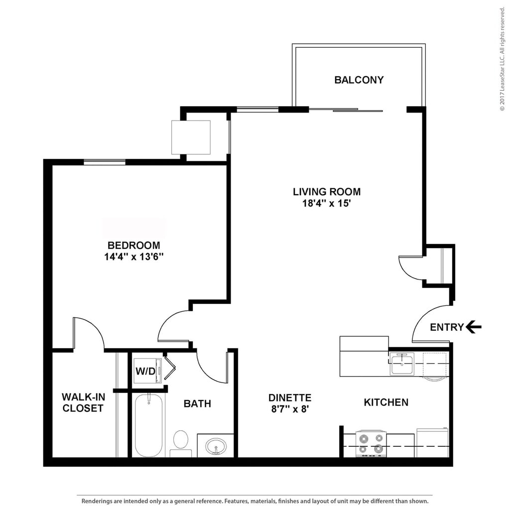 Traditional 1 Bedroom - Floorplan 1 ![]()