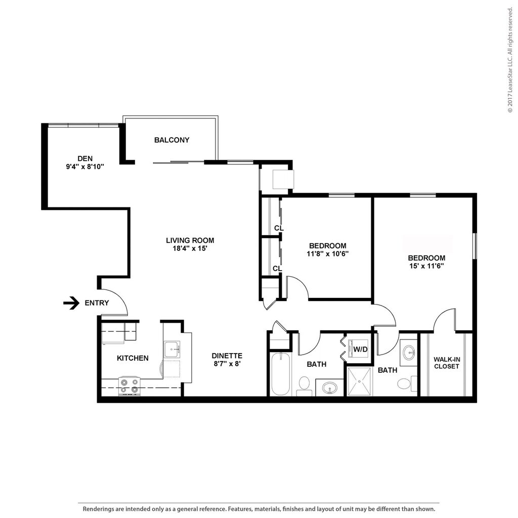 Traditional 1 Bedroom with Den - Floorplan 2 ![]()