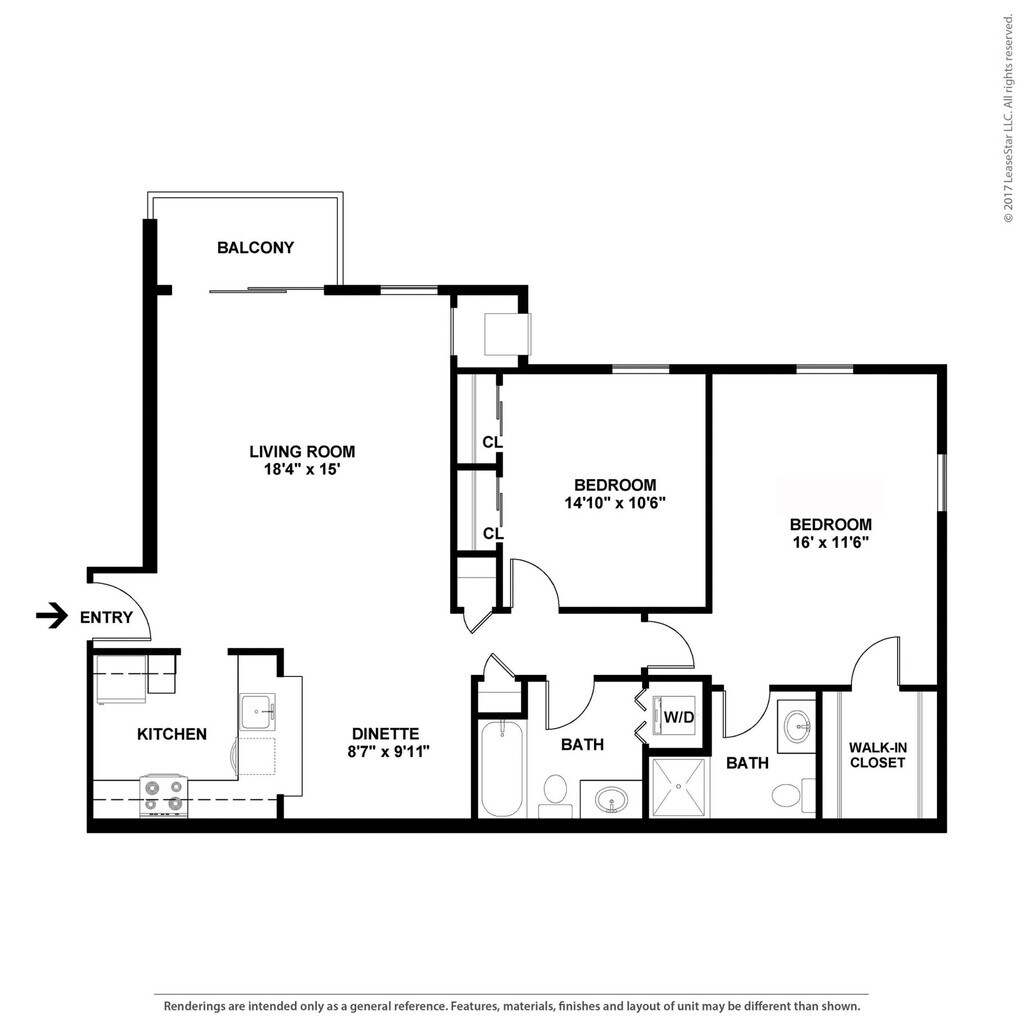 Traditional 2 Bedroom - Floorplan 2 ![]()