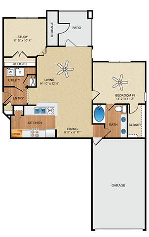 GASTON - Floorplan 10 Apartment Unit: 0913Apartment Model: GASTON1 Bedroom, 1 Bath, 962 sq ftAvailable NowEDMUND