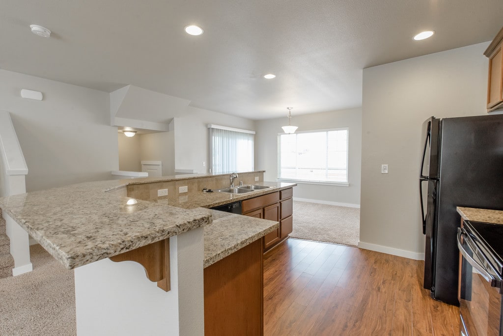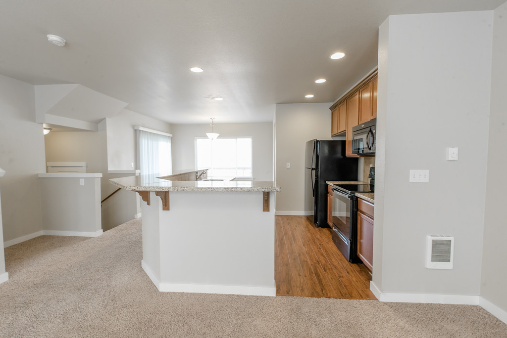 Fall in love with the luxury and charm of your new home at Wynstone Townhomes. Located in Puyallup, WA Wynstone Townhomes is tucked away from big city life offering quiet and peaceful residential living in the Summit neighborhood. However, you will never find yourself too far from dining and convenient shopping locations. Offering newly renovated 2,3 and 4-bedroom homes, Wynstone Townhomes offers you all of the desirable amenities and more. Kitchens featuring beautiful stained wood cabinets and all black matching appliances. Your kitchen will also include a garbage disposal, dishwasher and microwave. Your living room will be adorned with a wood burning fireplace and ceiling fan. Each home also comes with a private balcony. Community amenities include a basketball court, playground and a pet play area. Please refer to our pet policy to ensure that your furry companion meets our guidelines.