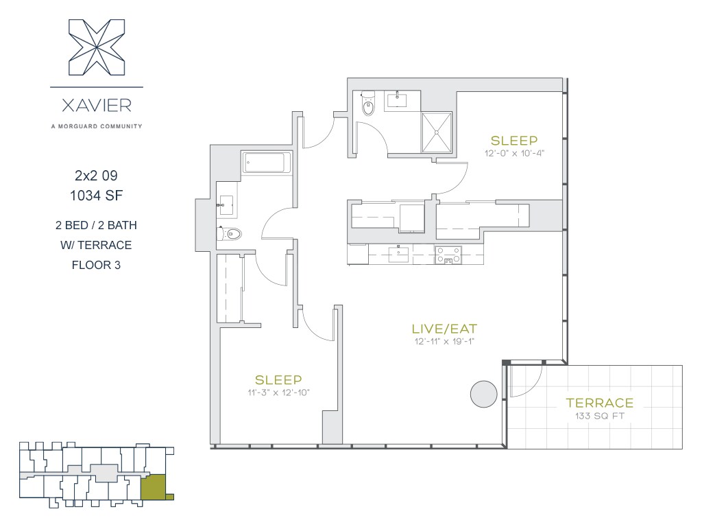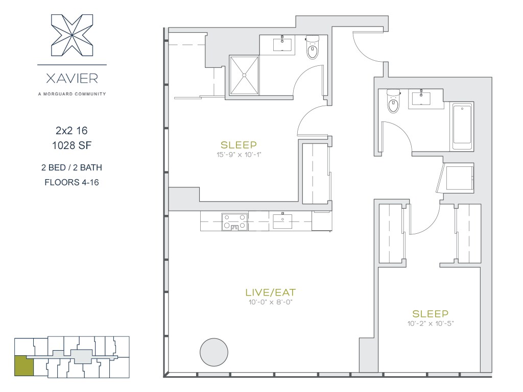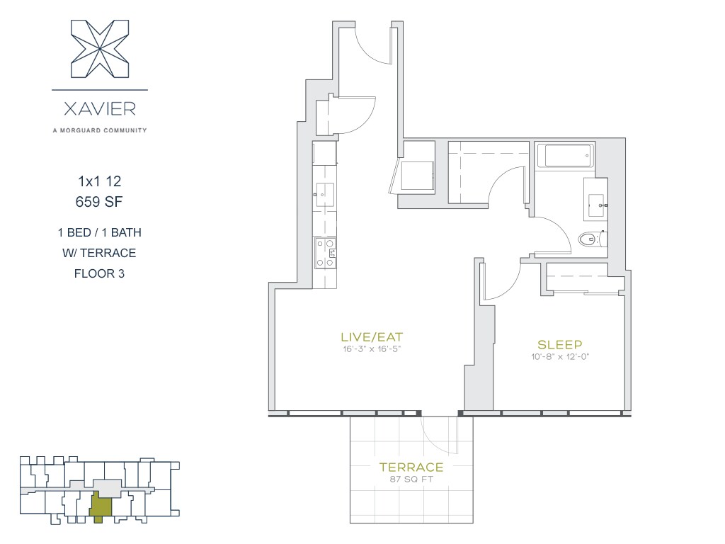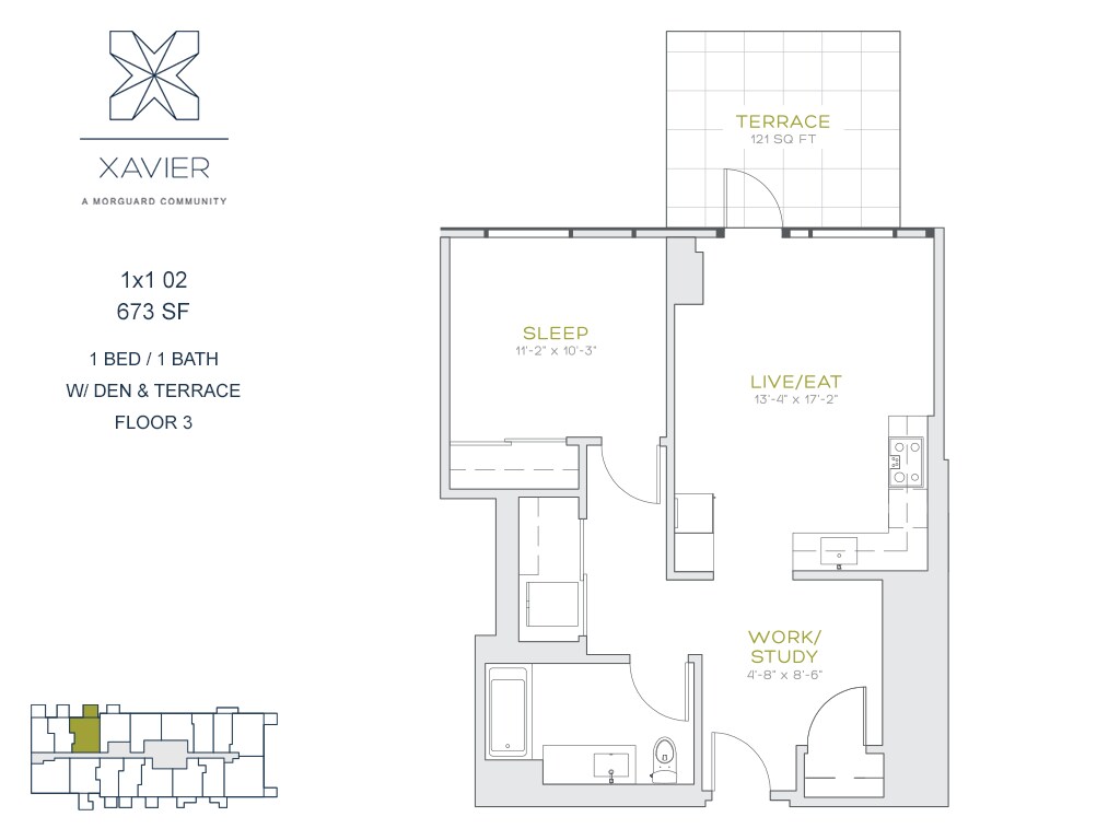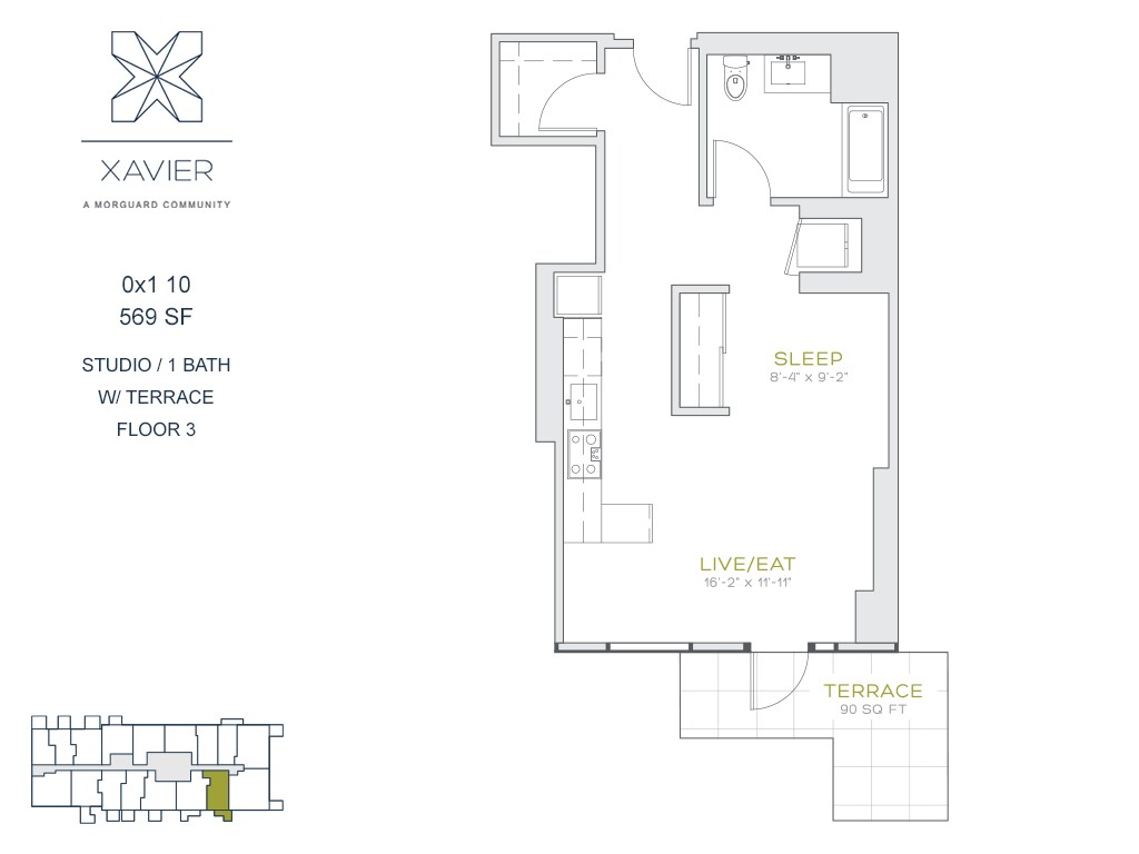 Xavier offers Studio to 2 Bedroom apartments starting from $2,486 and having 494–1,034 sq ft. Here is the current pricing and availability: