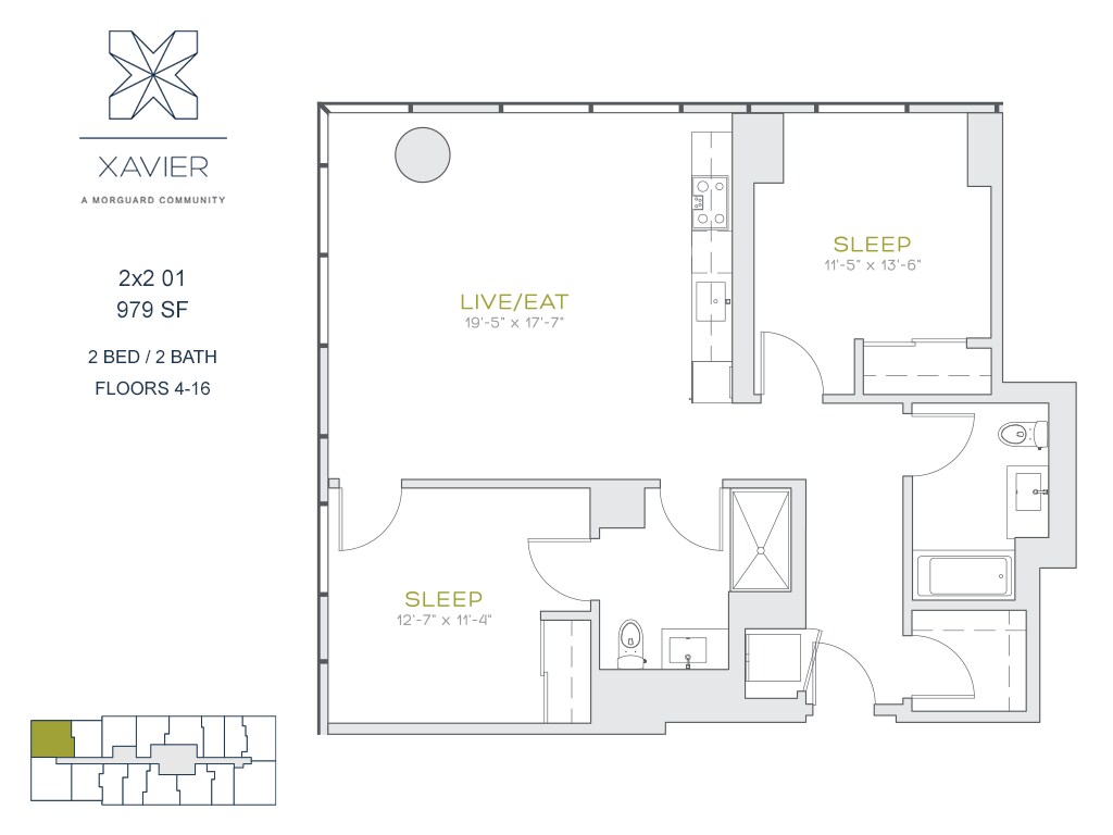 Studio to 2 Bedroom Apartments at Xavier currently range from $2,486 to $4,527