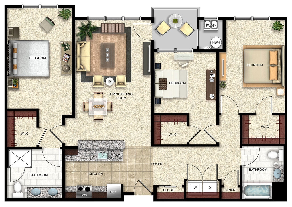 - 3 Bedrooms- Tribeca- $3,8153 Beds, 2 Baths, 1420 sq ftAvailable Now- Availability Details- Price - Availability Date - Unit - Sq Ft - Deposit - $3,815 - Available Now - Tribeca - 1420 sq ft - $3,190 - Model Amenities and Features- Features- Air Conditioning