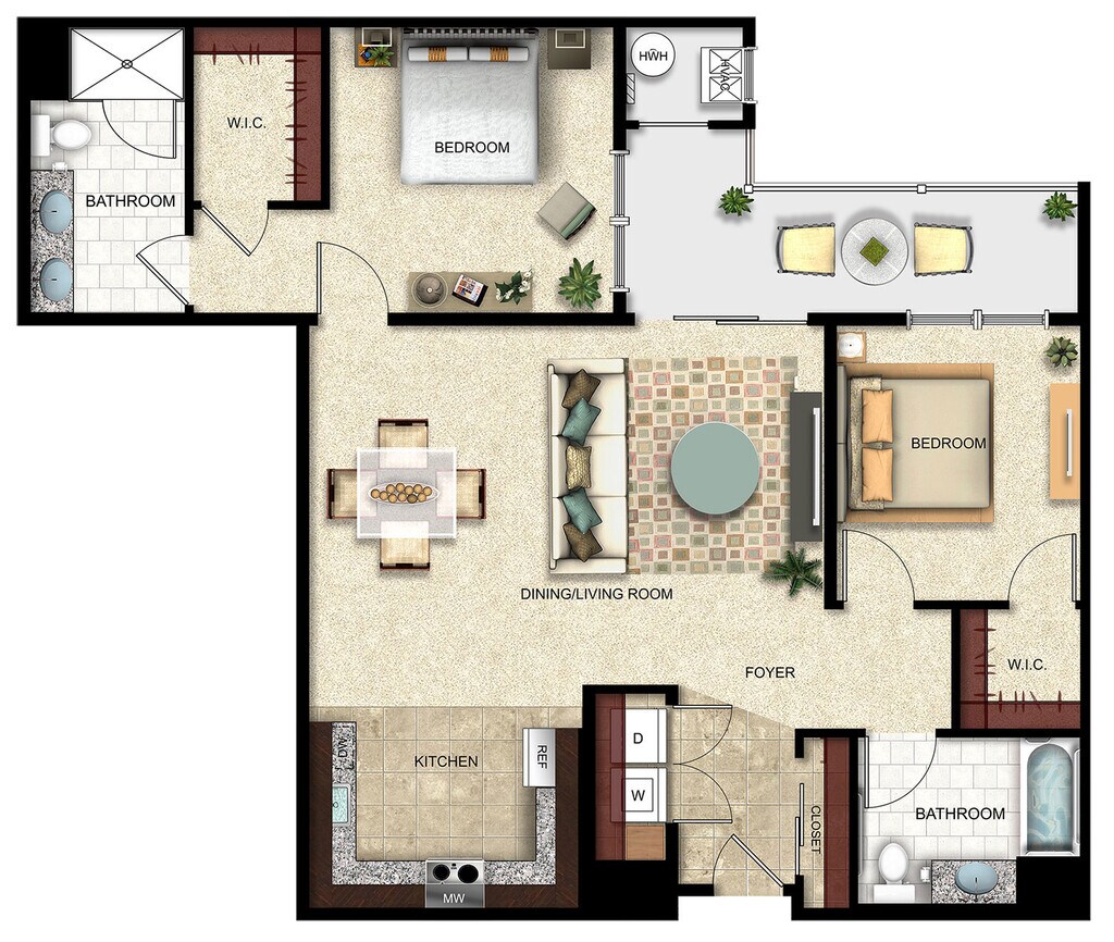 Apartment Model: Libertry$3,5152 Bedroom, 2 Bath, 1430 sq ftAvailable Now![]() - Libertry - Floorplan 1