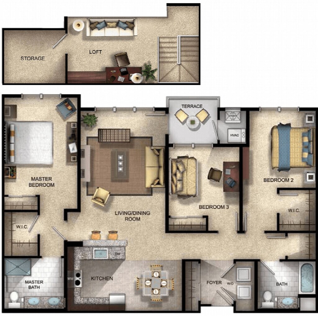 Apartment Model: Tribeca + Loft$4,2253 Bedroom, 2 Bath, 1675 sq ftAvailable Now![]() - Tribeca + Loft - Floorplan 1