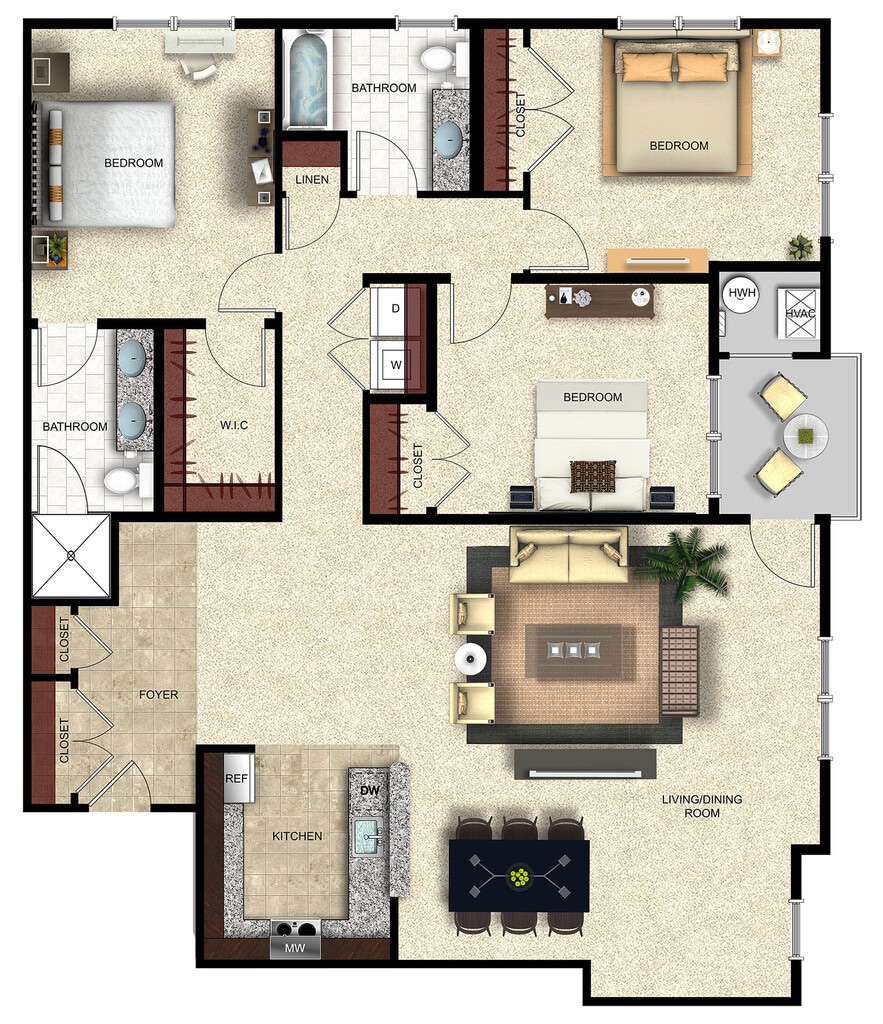 Apartment Model: Soho$4,0353 Bedroom, 2 Bath, 1525 sq ftAvailable Now![]() - Soho - Floorplan 1 - Soho with Den- $4,1353 Beds, 2 Baths, 1525 sq ftAvailable Now- Availability Details- Price - Availability Date - Unit - Sq Ft - Deposit - $4,135 - Available Now - Soho with Den - 1525 sq ft - $3,260 - Model Amenities and Features- Features- Air Conditioning