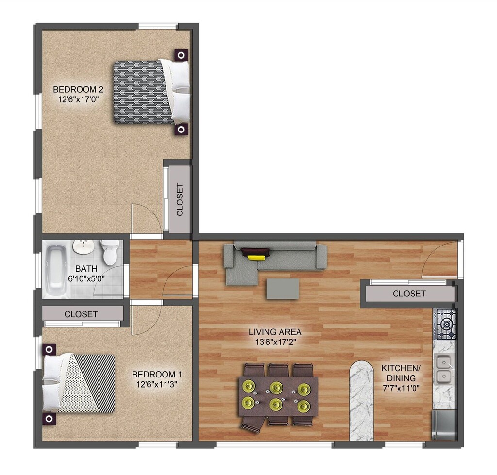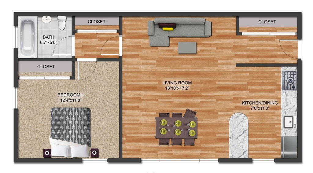 2 Bed 1 Bath - Floorplan 1