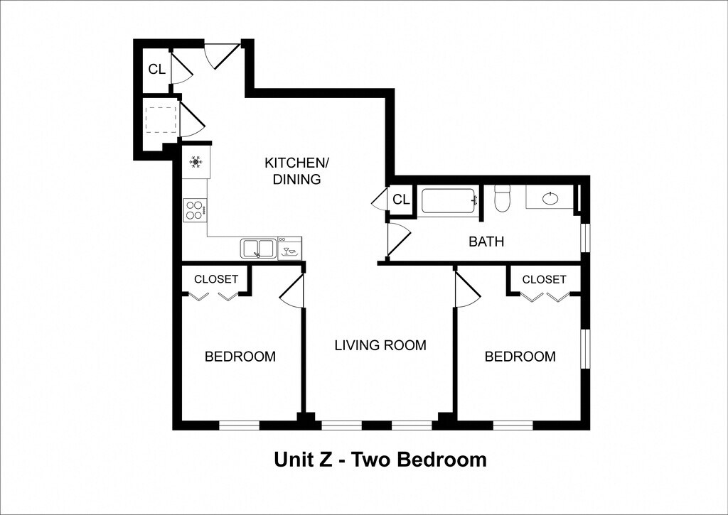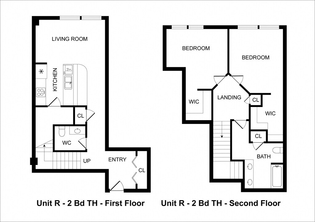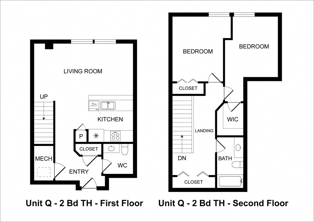 2 Bedrooms / 1 Bathroom - Floorplan 2 2 Bedrooms / 1 Bathroom Townhome