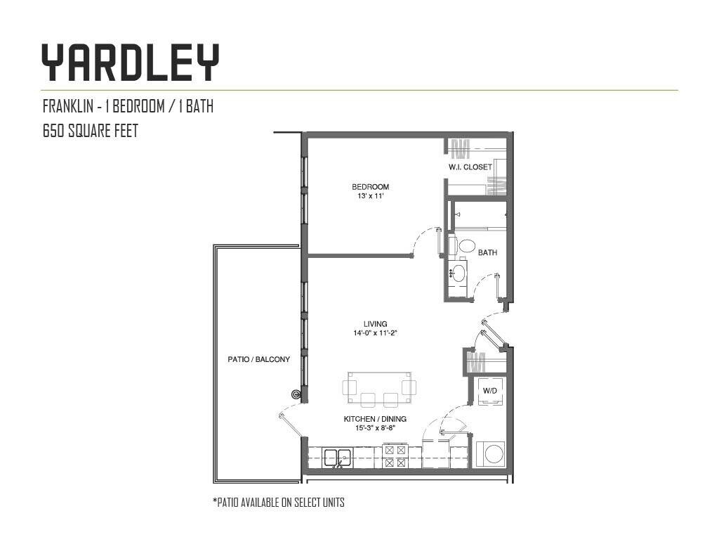 Apartment Model: Elliot$1,0951 Bedroom, 1 Bath, 668 sq ftAvailable NowElliot - Floorplan 1 Elliot - Floorplan 2 Apartment Unit: 211PAApartment Model: Elliot$1,0951 Bedroom, 1 Bath, 668 sq ftAvailable NowFranklin