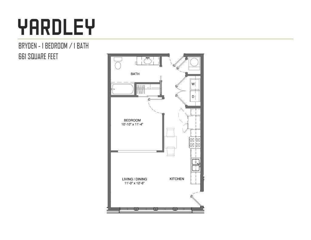 Apartment Model: Bryden$1,3301 Bedroom, 1 Bath, 661 sq ftUnavailableBryden - Floorplan 1 Bryden - Floorplan 2 Fulton
