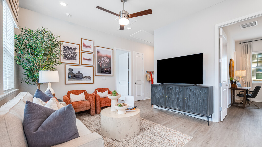 Yardly® Broadway is an innovative community built by Taylor Morrison, featuring apartment homes for rent. Each home comes with a landscaped, private backyard with turf that provides flexible living for you and your pet. We offer maintenance and repair services to our renters, which allows for a low-maintenance lifestyle. When you rent at a qualifying Yardly community, receive up to $5,000 towards financing incentives when purchasing a Taylor Morrison home.