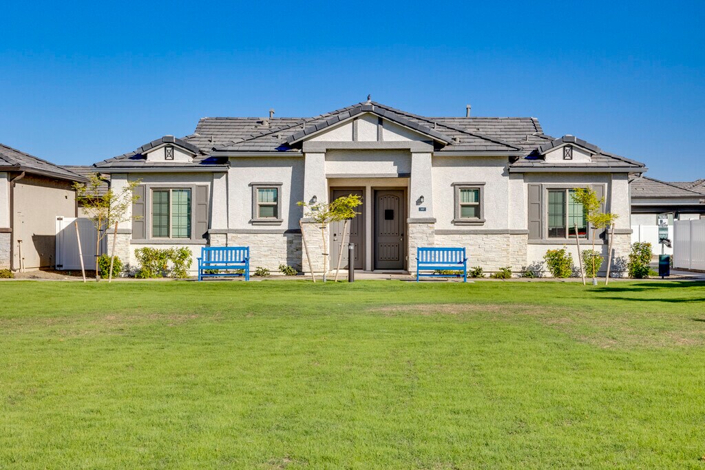 Our community is innovative featuring single story cottage style homes for rent. Come experience our resort style pool and spa with an outdoor fireplace lounge. To add to your enjoyment, we also have a fully equipped fitness center, BBQ area, and EV chargers all within our private gated community to make you feel at home. Each cottage comes with the latest tech of smart locks, entry cameras, and connected hubs plus landscaped private backyards to make you feel at home. We offer maintenance and repair services to our renters, which allows for a low-maintenance lifestyle. At The Crofton at Sheely Farms, youre not just choosing a place to live you are becoming part of a vibrant community where neighbors care and connections grow.