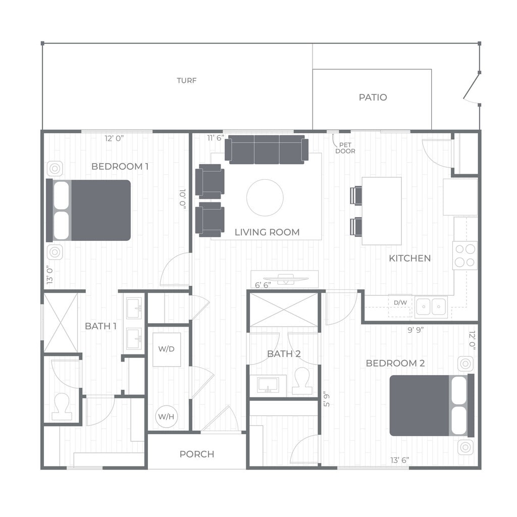 2 Beds, 2 Baths, 1030 sq ftAvailable NowModel Gallery
