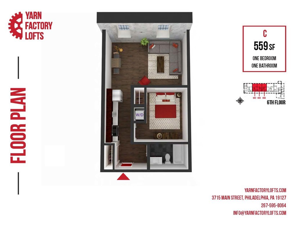 Yarn Factory Lofts offers 1 Bedroom apartments starting from $1,600 and having 559–714 sq ft. Here is the current pricing and availability: