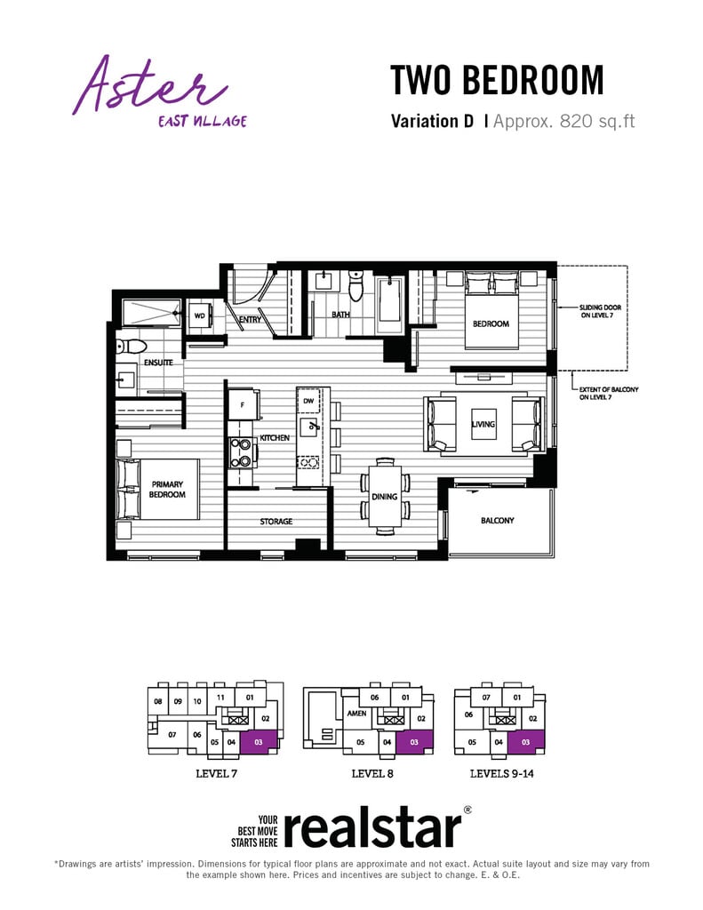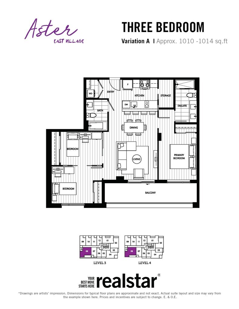 Apartment Model: Aster East Village 3 Bed 2 Bath C$3,3953 Bedroom, 2 Bath, 974 sq ftAvailable Now![]()