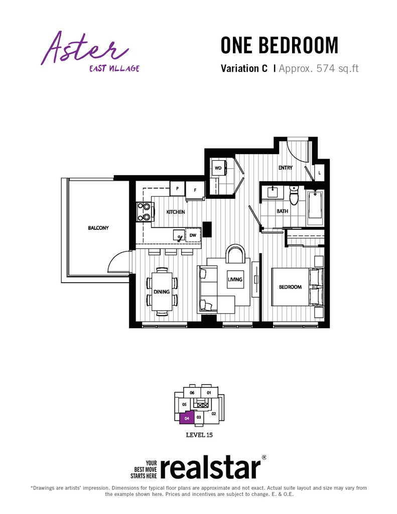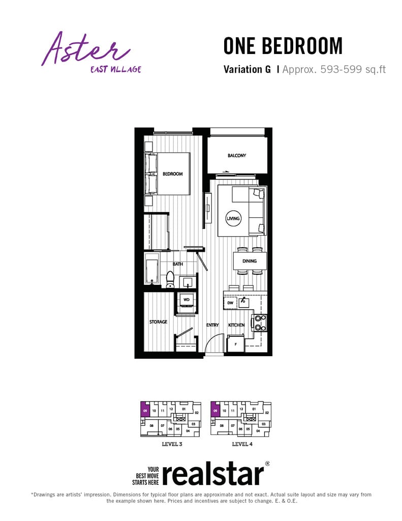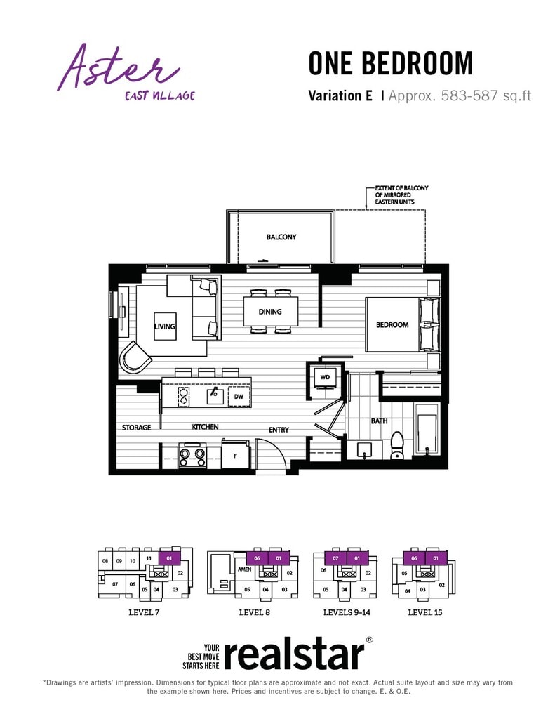 Aster East Village 1 Bed 1 Bath G No Parking - Floorplan 1 ![]()