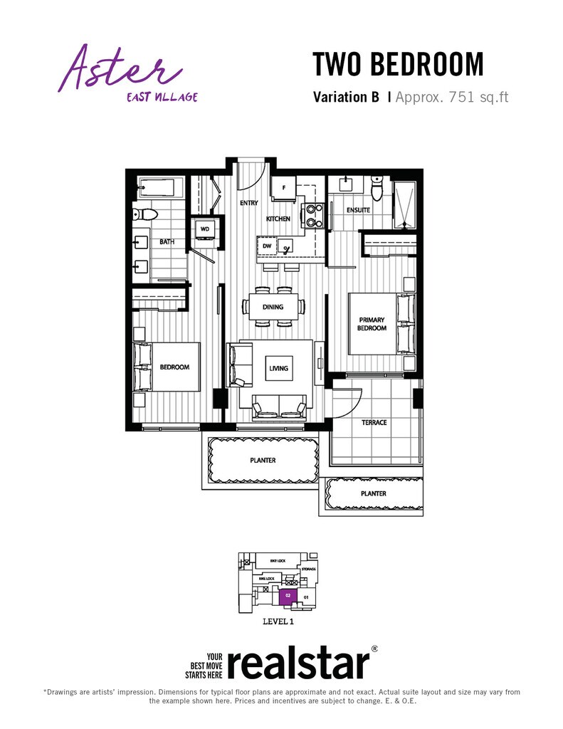 Apartment Model: Aster East Village 2 Bed 2 Bath B$3,0102 Bedroom, 2 Bath, 751 sq ftAvailable February 1, 2026![]()