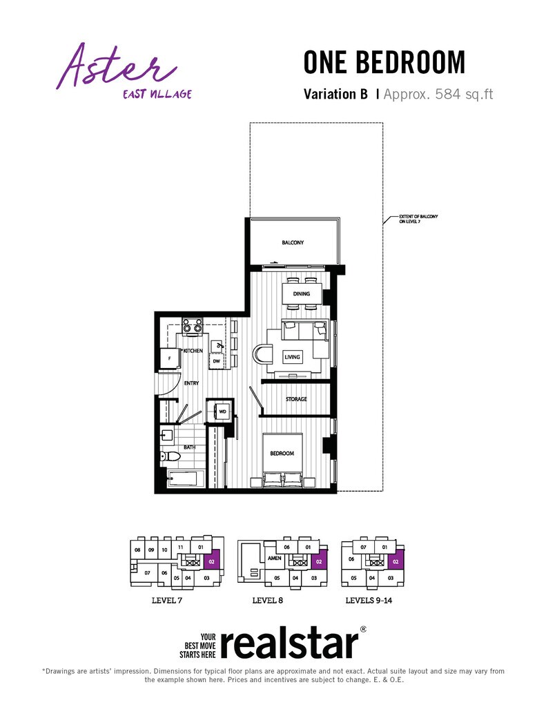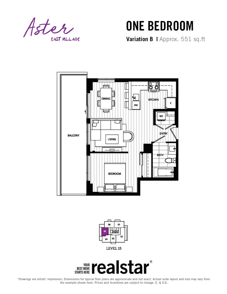 Aster East Village 1 Bed 1 Bath A No Parking - Floorplan 1 ![]()