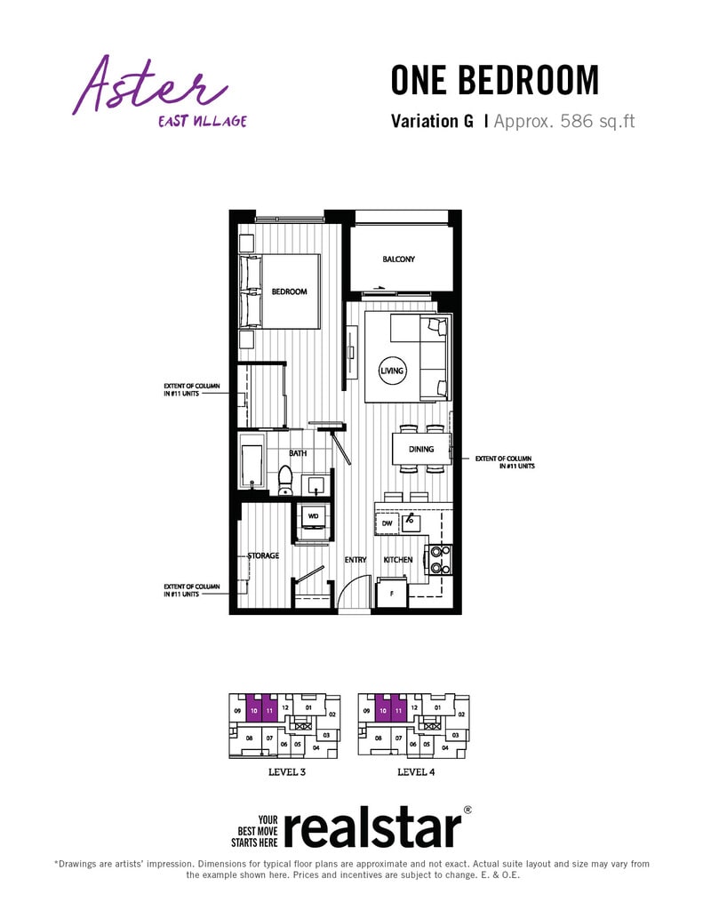 Apartment Model: Aster East Village 1 Bed 1 Bath G No ParkingFrom $2,0851 Bedroom, 1 Bath, 586 sq ftAvailable Now![]()