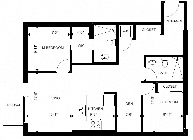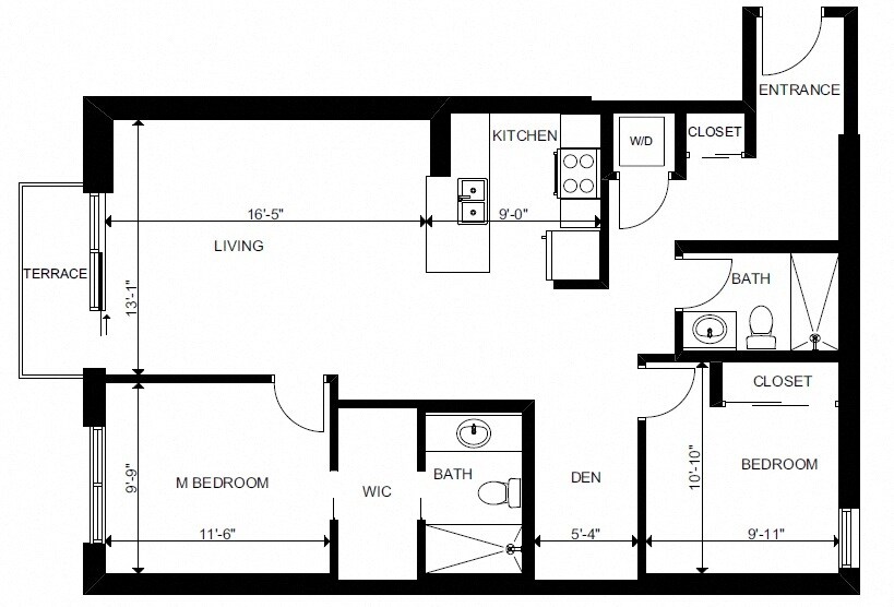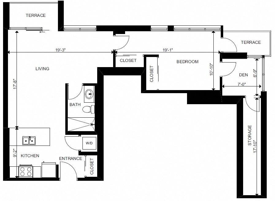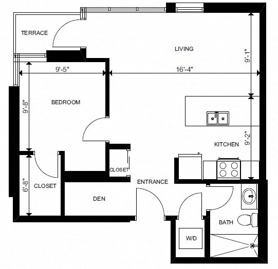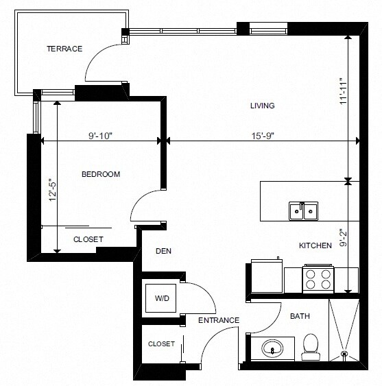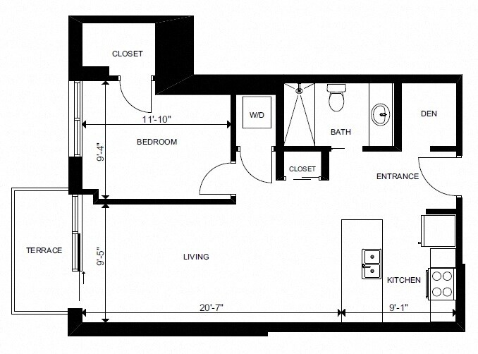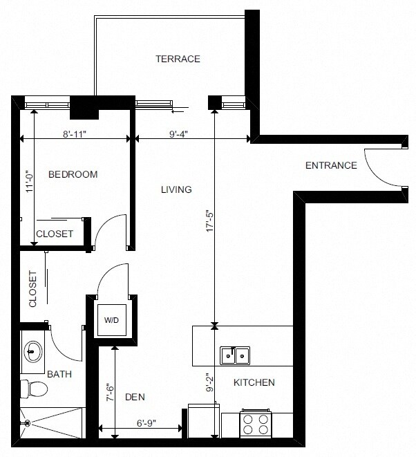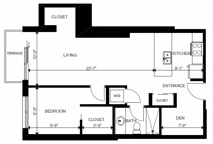 1 Bed Den 1 Bath D - Floorplan 1 1 Bed 1 Bath E