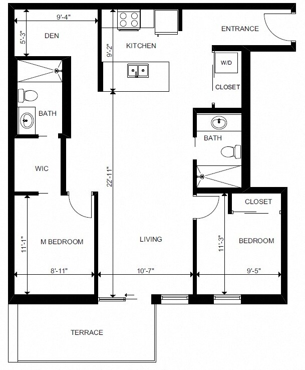 1 Bed 1 Bath J - Floorplan 1 1 Bed Den 1 Bath C