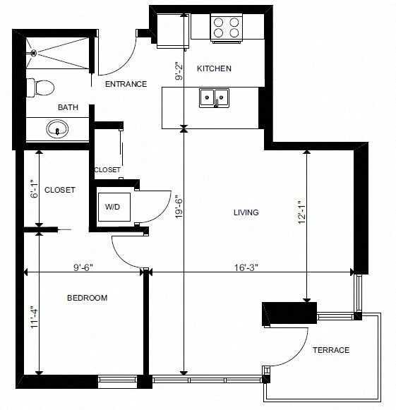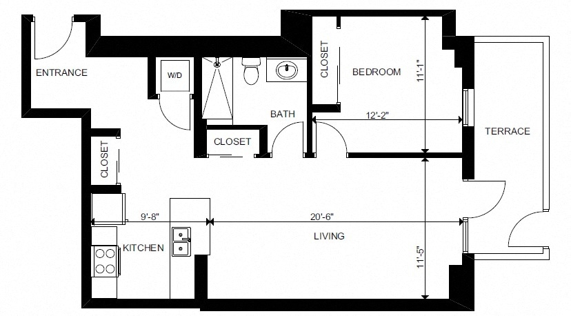 1 Bed 1 Bath N - Floorplan 1 1 Bed 1 Bath J
