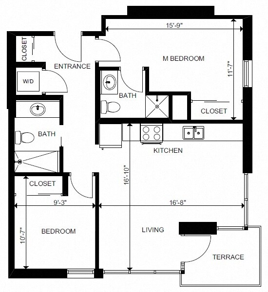 Apartment Model: 1 Bed 1 Bath M1 Bedroom, 1 Bath, 495 sq ftAvailable Now![]()