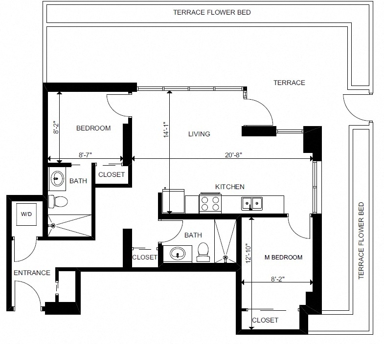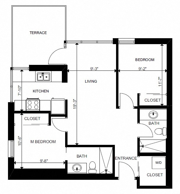 2 Bed 2 Bath E - Floorplan 1 2 Bed 2 Bath D