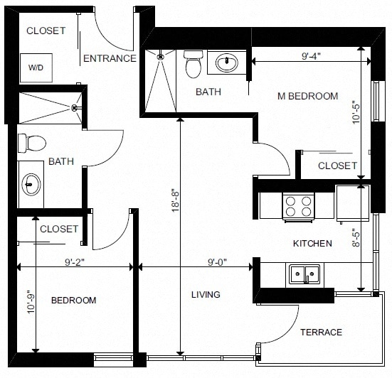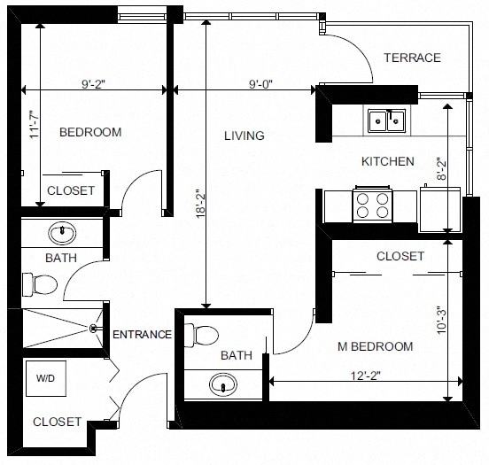 Apartment Model: 2 Bed 2 Bath D2 Bedroom, 2 Bath, 808 sq ftUnavailable![]()