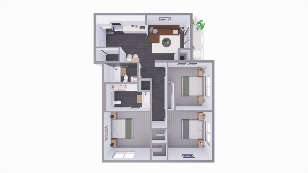 3 Bedroom - Floorplan 10 Apartment Unit: 307-409Apartment Model: 3 Bedroom$2,1003 Bedroom, 2 Bath, 1057 sq ftAvailable NowApartment Unit: 305-115Apartment Model: 3 Bedroom$2,1003 Bedroom, 2 Bath, 1057 sq ftAvailable May 31, 20264 Bedrooms
