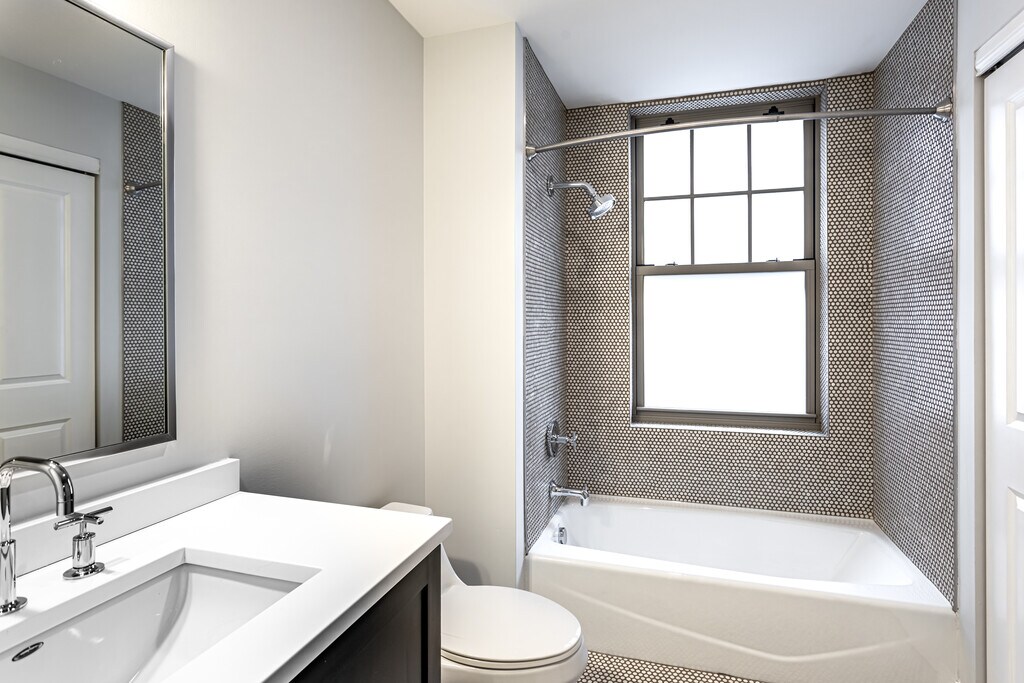 - Floor-to-ceiling tile in bathrooms