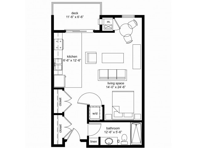 Studio, 1 Bath, 547-563 sq ftLargest StudioThis is the largest Studio at this PropertyModel Gallery
