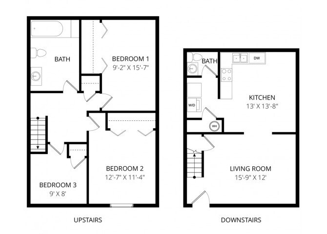 Apartment Model: 2 Bedroom2 Bedroom, 1.5 Bath, 1067 sq ftUnavailable2 Bedroom - Floorplan 1 3 Bedrooms