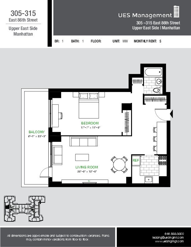 1 Bedroom / 1 Bathroom - Image 10 Apartment Unit: 14TWApartment Model: 1 Bedroom / 1 Bathroom1 Bedroom, 1 Bath, 821 sq ftAvailable Now![]()
