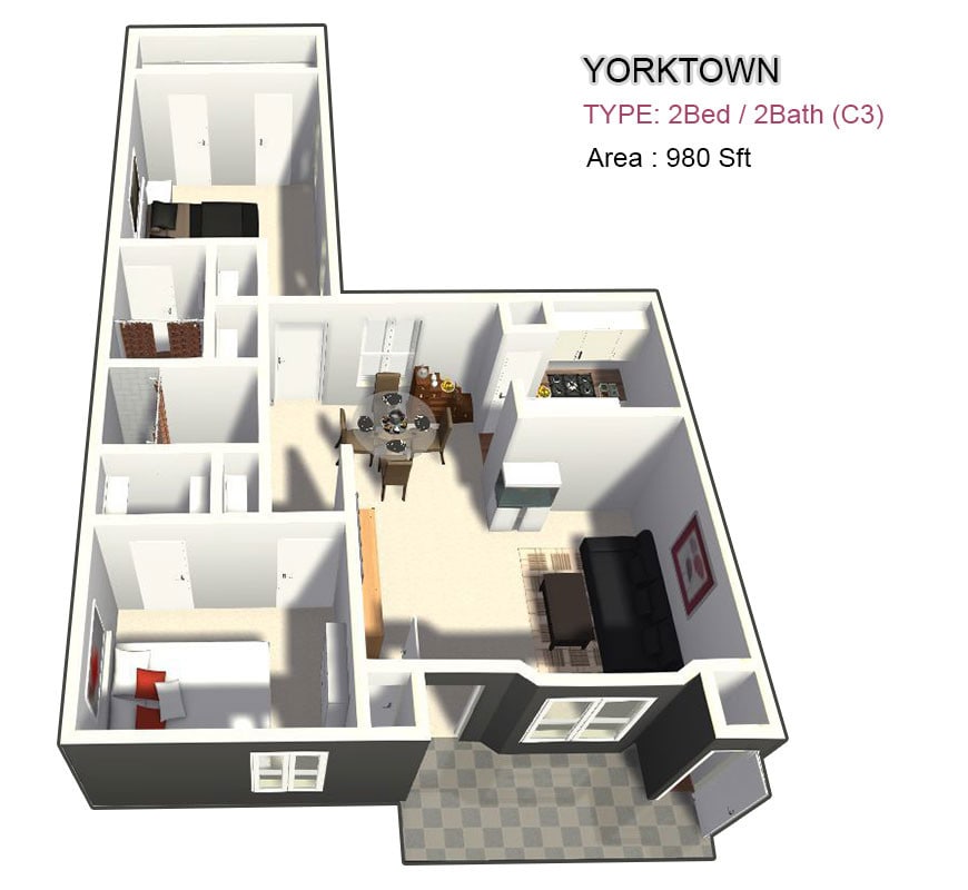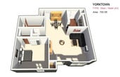 Yorktown offers Studio to 3 Bedroom apartments starting from $800 and having 465–1,715 sq ft. Here is the current pricing and availability: