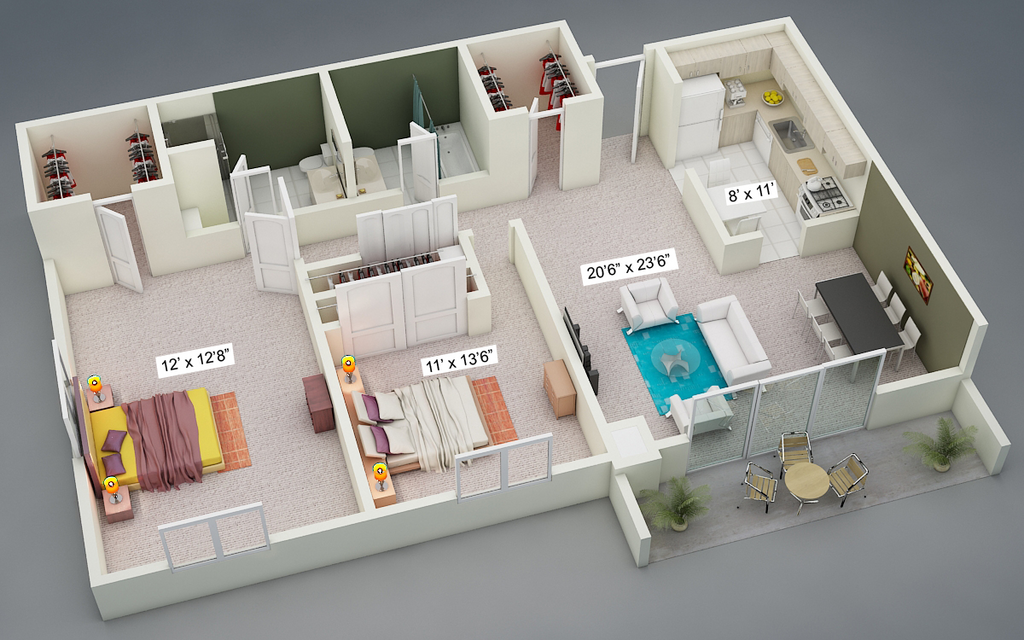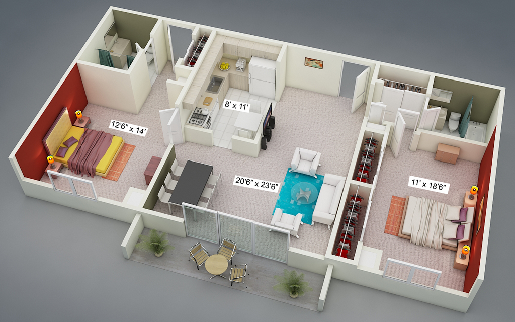 2 Beds, 2 Baths, 1200 sq ftModel Gallery
