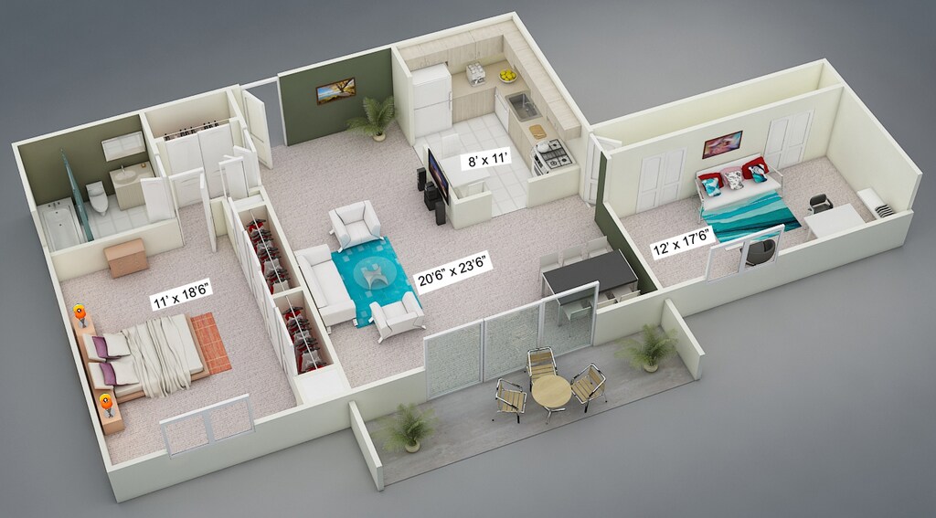 2 Beds, 1 Bath, 1111-1200 sq ftModel Gallery