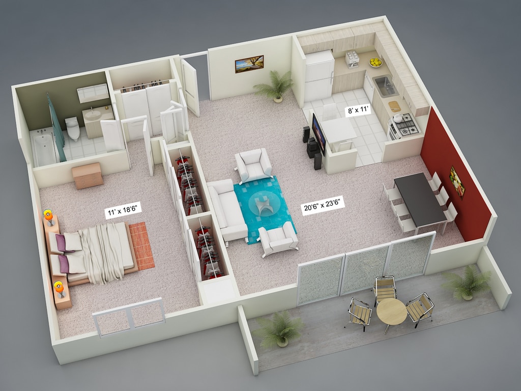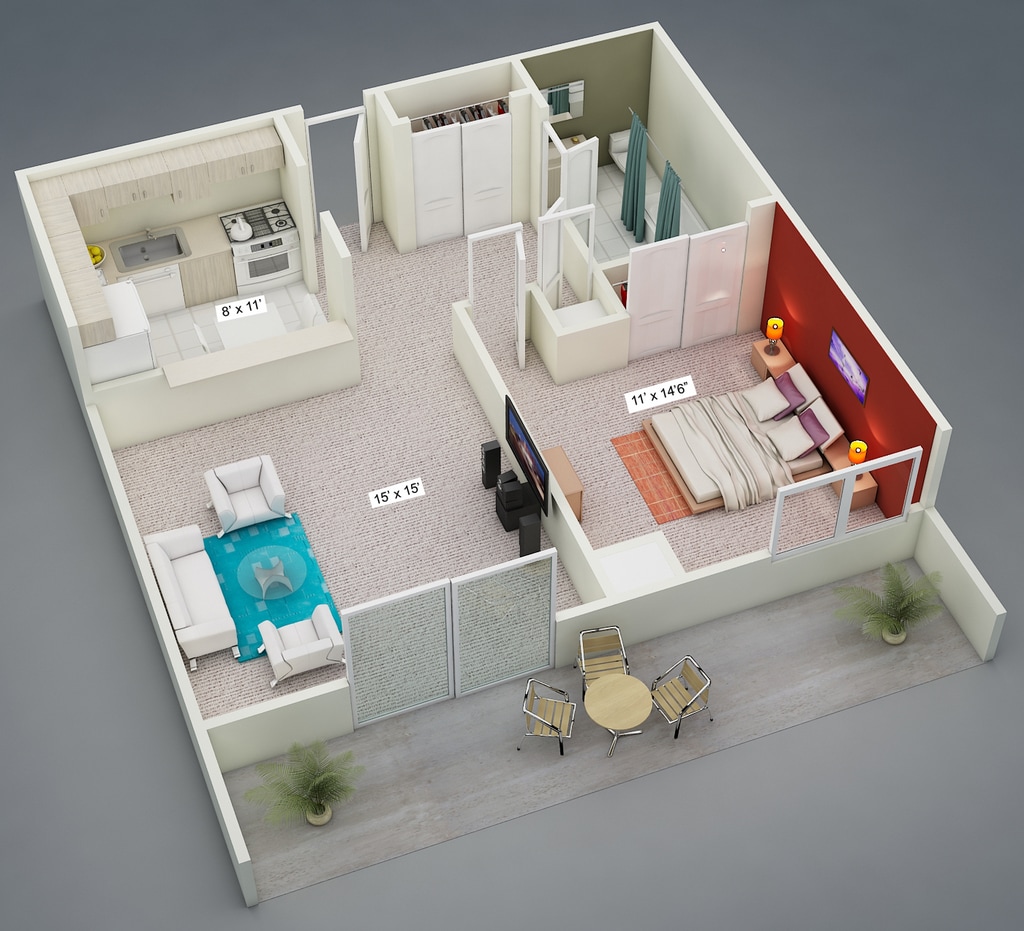 2 Beds, 1 Bath, 1000 sq ftModel Gallery