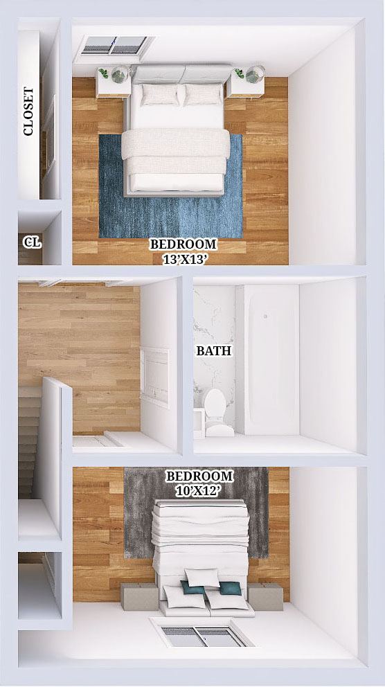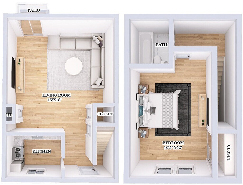 Renovated 1 Bed, 1 Bath Townhouse - Floorplan 5 2 Bedrooms