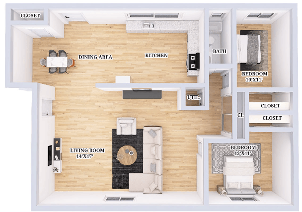 2 Bed, 1 Bath Apartment - Floorplan 1 Renovated 2 Bed, 1 Bath Apartment