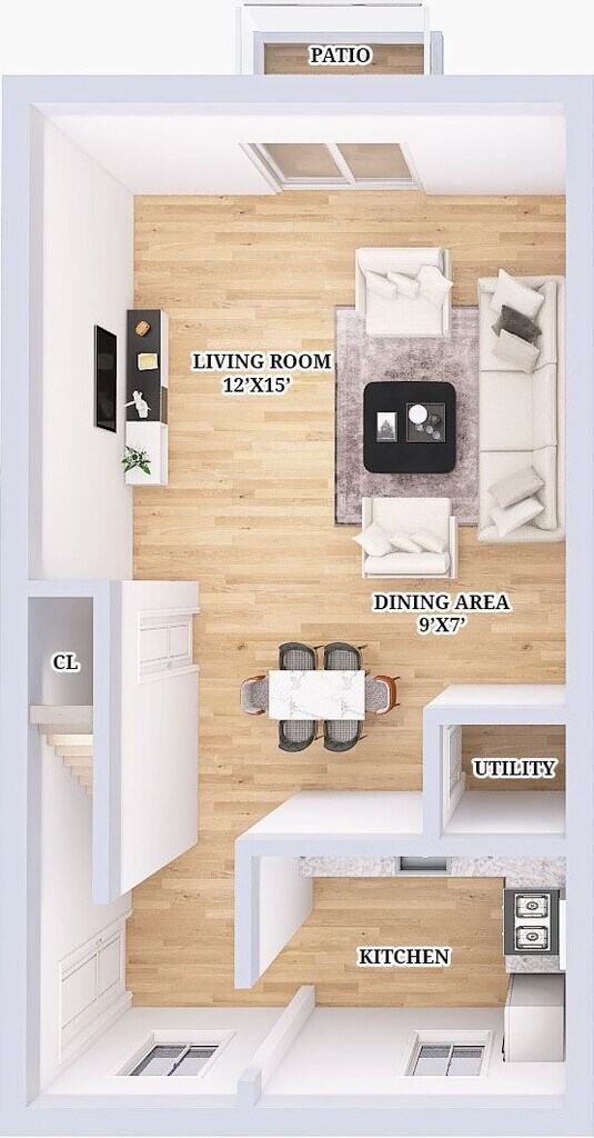 Renovated 1 Bed, 1 Bath Townhouse - Floorplan 4 ![]()