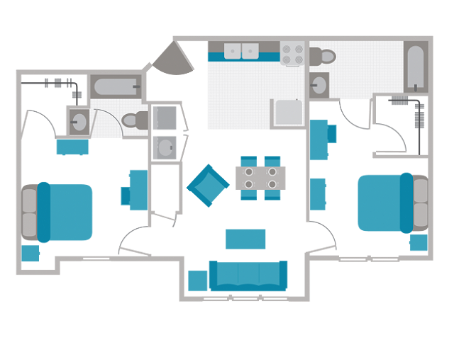 2 Bed, 2 Bath - Floorplan 1 Apartment Unit: Private BedroomApartment Model: 2 Bed, 2 Bath2 Bedroom, 2 Bath, 954 sq ftAvailable August 13, 20262 Bed, 2 Bath Classic