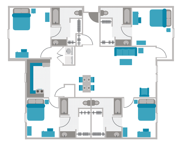 4 Bed, 4 Bath - Floorplan 1 Apartment Unit: Private BedroomApartment Model: 4 Bed, 4 Bath4 Bedroom, 4 Bath, 1900 sq ftAvailable August 13, 2026
